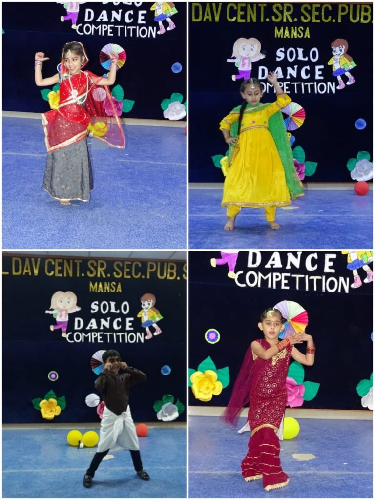 ਮਾਨਸਾ, 30 ਸਤੰਬਰ 2022 : ਸਥਾਨਕ ਡੀਏਵੀ ਪਬਲਿਕ ਸਕੂਲ ਵਿਖੇ ਪਹਿਲੀ ਅਤੇ ਦੂਜੀ ਜਮਾਤ ਦੇ ਵਿਦਿਆਰਥੀਆਂ ਲਈ ਏਕਲ ਨਾਚ ਪ੍ਰਤੀਯੋਗਿਤਾ ਕਰਵਾਈ ਗਈ, ਜਿਸ ਵਿਚ ਵਿਦਿਆਰਥੀਆਂ ਨੇ ਵੱਧ ਚੜ੍ਹਕੇ ਹਿੱਸਾ ਲਿਆ। ਉਨ੍ਹਾਂ ਨੇ ਵੱਖ-ਵੱਖ ਪੁਸ਼ਾਕਾਂ ਵਿੱਚ ਨਾਚ ਪੇਸ਼ ਕੀਤਾ।