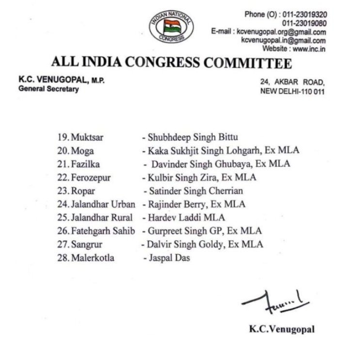 Share Facebook Twitter LinkedIn Pinterest Email ਬਿਊਰੋ, ਪ੍ਰਾਈਮ ਪੋਸਟ ਪੰਜਾਬ ਕਾਂਗਰਸ ਵੱਲੋਂ ਪੰਜਾਬ ਦੇ ਵੱਖ-ਵੱਖ ਜ਼ਿਲ੍ਹਿਆਂ 28 ਪ੍ਰਧਾਨ ਨਿਯੁਕਤ ਕੀਤੇ ਗਏ ਹਨ, ਜਿਸ ਦੀ ਲਿਸਟ ਹੇਠਾਂ ਦਿੱਤੀ ਗਈ ਹੈ-