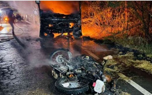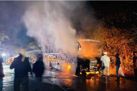 ਇਸ ਮਗਰੋਂ ਬੱਸ ਤੇ ਮੋਟਰਸਾਈਕਲ ਨੂੰ ਭਿਆਨਕ ਅੱਗ ਲੱਗ ਗਈ। ਇਸ ਦੌਰਾਨ ਬੱਸ ਵਿਚ ਸਵਾਰ ਯਾਤਰੀਆਂ ਨੇ ਤੇਜ਼ੀ ਨਾਲ ਛਾਲ ਮਾਰ ਕੇ ਆਪਣੀ ਜਾਨ ਬਚਾਈ। ਬੱਸ ਟੂਰਸਿਟ ਦੱਸੀ ਜਾ ਰਹੀ ਹੈ ਤੇ ਇਸ ਵਿਚ ਸਿਲੰਡਰ ਰੱਖੇ ਹੋਣ ਦਾ ਵੀ ਪਤਾ ਲੱਗਾ ਹੈ ਪਰ ਲੋਕਾਂ ਵੱਲੋਂ ਤੇਜ਼ੀ ਨਾਲ ਸਿਲੰਡਰ ਬੱਸ ਵਿਚ ਉਤਾਰ ਲਏ ਗਏ।
