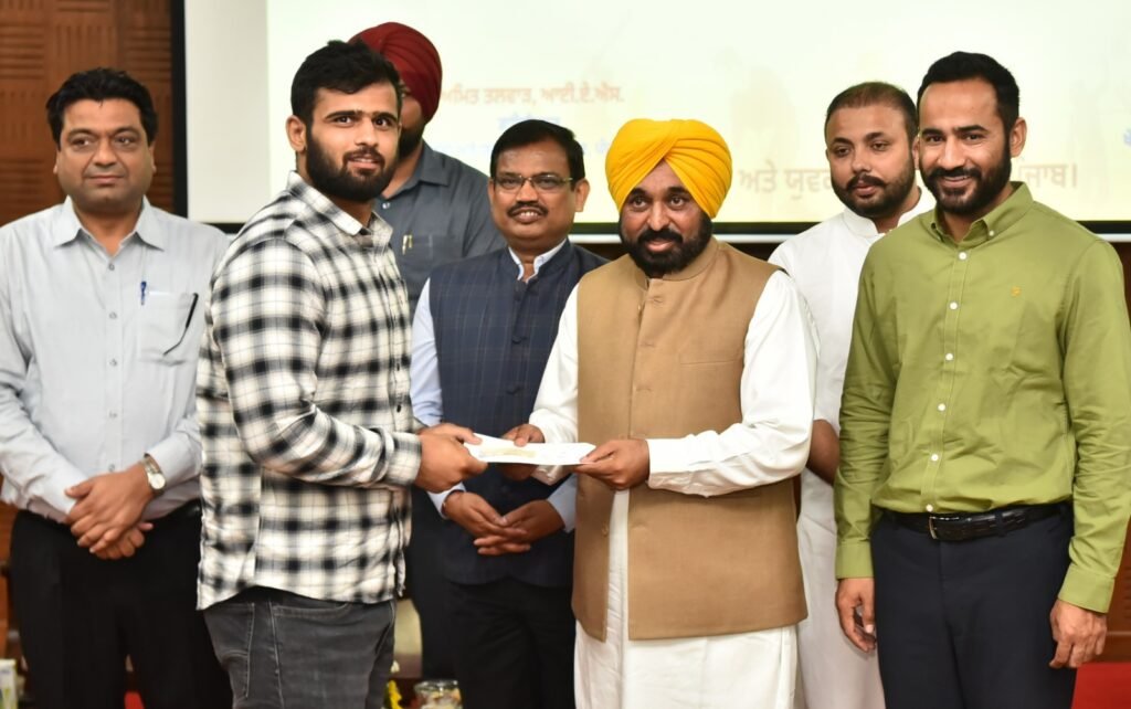 ਮਾਨਸਾ, 22 ਅਪ੍ਰੈਲ 2023 : ਸੂਬੇ ਅੰਦਰ ਖੇਡਾਂ ਨੂੰ ਪ੍ਰਫੁਲਿਤ ਕਰਨ ਅਤੇ ਨੌਜਵਾਨਾਂ ਨੂੰ ਖੇਡਾਂ ਵੱਲ ਉਤਸਾਹਿਤ ਕਰਨ ਲਈ ਪੰਜਾਬ ਸਰਕਾਰ ਵੱਲੋਂ ਕੌਮੀ ਖੇਡਾਂ ਵਿੱਚ ਤਮਗਾ ਜੇਤੂ ਖਿਡਾਰੀਆਂ ਨੂੰ ਨਗਦ ਇਨਾਮ ਦਿੱਤੇ ਜਾ ਰਹੇ ਹਨ। ਇਸੇ ਤਹਿਤ ਗੁਜਰਾਤ ਦੇ ਅਹਿਮਦਾਬਾਦ ਸ਼ਹਿਰ ਵਿੱਚ ਹੋਈਆਂ ਨੈਸ਼ਨਲ ਗੇਮਜ਼-2022 ਵਿੱਚ ਤਮਗੇ ਪ੍ਰਾਪਤ ਕਰਨ ਵਾਲੇ ਸੂਬੇ ਦੇ 141 ਖਿਡਾਰੀਆਂ ਨੂੰ ਚੰਡੀਗੜ੍ਹ ਦੇ 35 ਸੈਕਟਰ ਵਿਖੇ ਸਥਾਪਿਤ ਮਿਊਂਸਿਪਲ ਭਵਨ ਵਿਖੇ ਪੰਜਾਬ ਦੇ ਮੁੱਖ ਮੰਤਰੀ ਸ੍ਰ. ਭਗਵੰਤ ਮਾਨ ਨੇ 5.43 ਕਰੋੜ ਦੀ ਨਗਦ ਰਾਸ਼ੀ ਨਾਲ ਸਨਮਾਨਿਤ ਕੀਤਾ।