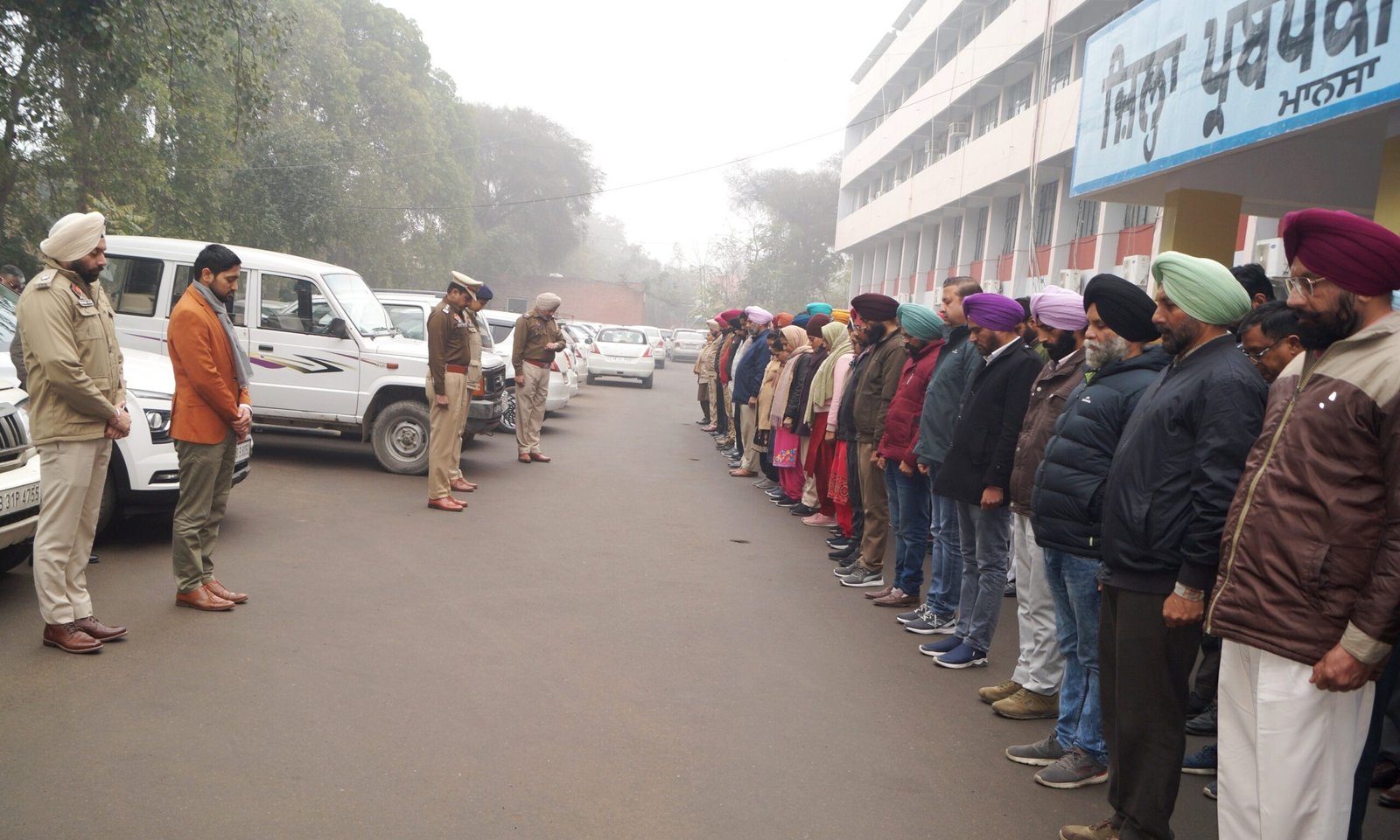 ਮਾਨਸਾ, 30 ਜਨਵਰੀ 2024 :ਰਾਸ਼ਟਰ ਪਿਤਾ ਮਹਾਤਮਾ ਗਾਂਧੀ ਦੇ ਬਲਿਦਾਨ ਦਿਵਸ ਮੌਕੇ ਭਾਰਤ ਦੇ ਸੁਤੰਤਰਤਾ ਸੰਗਰਾਮ ਦੌਰਾਨ ਆਪਣੀਆਂ ਜਾਨਾਂ ਦੇਸ਼ ਕੌਮ ਲਈ ਵਾਰਨ ਵਾਲੇ ਸ਼ਹੀਦਾਂ ਦੀ ਯਾਦ ਅਤੇ ਉਨ੍ਹਾਂ ਨੂੰ ਸ਼ਰਧਾਂਜਲੀ ਦੇਣ ਲਈ ਅੱਜ ਸਥਾਨਕ ਜ਼ਿਲ੍ਹਾ ਪ੍ਰਬੰਧਕੀ ਕੰਪਲੈਕਸ ਵਿਖੇ ਡਿਪਟੀ ਕਮਿਸ਼ਨਰ ਸ੍ਰੀ ਪਰਮਵੀਰ ਸਿੰਘ ਅਤੇ ਐਸ.ਐਸ.ਪੀ. ਡਾ. ਨਾਨਕ ਸਿੰਘ ਦੀ ਅਗਵਾਈ ਹੇਠ ਪੁਲਿਸ ਅਤੇ ਸਿਵਲ ਪ੍ਰਸ਼ਾਸਨ ਦੇ ਅਧਿਕਾਰੀਆਂ/ਕਰਮਚਾਰੀਆਂ ਵੱਲੋਂ ਸ਼ਹੀਦਾਂ ਨੂੰ ਯਾਦ ਕਰਦਿਆਂ 2 ਮਿੰਟ ਦਾ ਮੌਨ ਧਾਰਿਆ ਗਿਆ।