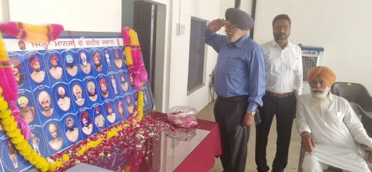 ਸ਼ਹੀਦਾਂ ਦੀ ਯਾਦ ਵਿੱਚ ਸੰਸਥਾ ਵਿੱਚ ਹਾਜ਼ਰ 80 ਤੋਂ ਵੱਧ ਪੈਨਸ਼ਨਰਾ ਵੱਲੋਂ ਪਹਿਲਾਂ ਖੜੇ ਹੋ ਕੇ 2 ਮਿੰਟ ਦਾ ਮੋਨ ਧਾਰਿਆ ਗਿਆ। ਫਿਰ ਇਕੱਲੇ ਇਕੱਲੇ ਪੈਨਸ਼ਨਰ ਨੇ ਜਿਲਾ ਮਾਨਸਾ ਦੇ ਸ਼ਹੀਦਾਂ ਦੀ ਫੋਟੋ ‘ਤੇ ਫੁੱਲ ਭੇਂਟ ਕਰਕੇ ਸਲੂਟ ਦੇ ਕੇ ਸ਼ਰਧਾਂਜਲੀ ਦਿੱਤੀ।