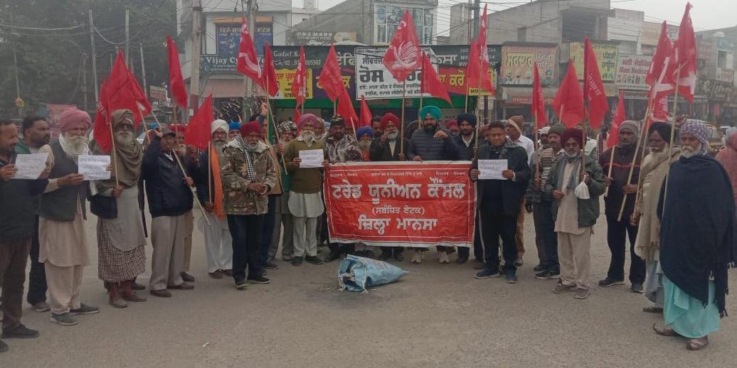 ਪੰਜਾਬ ਖੇਤ ਮਜ਼ਦੂਰ ਸਭਾ ਤੇ ਏਟਕ ਵੱਲੋ ਕੇਂਦਰ ਦੀ ਮੋਦੀ ਹਕੂਮਤ ਵਿਰੁੱਧ ਅਰਥੀ ਫੂਕ ਮੁਜਾਹਰਾ