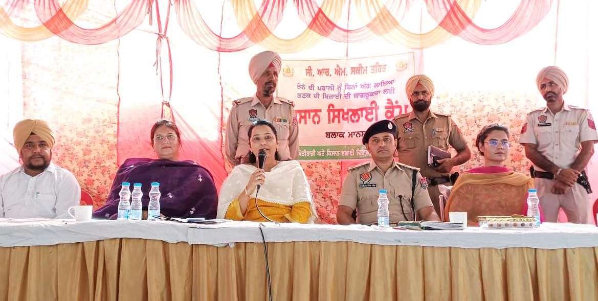 ਮਾਨਸਾ, 25 ਸਤੰਬਰ : ਝੋਨੇ ਦੇ ਸੀਜ਼ਨ ਦੇ ਮੱਦੇਨਜ਼ਰ ਕੋਈ ਵੀ ਕਿਸਾਨ ਪਰਾਲੀ ਨੂੰ ਅੱਗ ਨਾ ਲਗਾਵੇ ਅਤੇ ਜਿ਼ਲ੍ਹੇ ਨੂੰ ਜ਼ੀਰੋ ਬਰਨਿੰਗ ਬਣਾਉਣ ਲਈ ਡਿਪਟੀ ਕਮਿਸ਼ਨਰ ਸ੍ਰੀਮਤੀ ਨਵਜੋਤ ਕੌਰ ਨੇ ਪਿੰਡ ਭੈਣੀ ਬਾਘਾ ਵਿਖੇ ਕਿਸਾਨ ਸਿਖਲਾਈ ਕੈਂਪ ਵਿਚ ਸਿ਼ਰਕਤ ਕੀਤੀ।ਉਨ੍ਹਾਂ ਕਿਹਾ ਕਿ ਹੌਟ ਸਪੌਟ ਪਿੰਡਾਂ ਵਿਚ ਇਸ ਤਰ੍ਹਾਂ ਦੇ ਕੈਂਪ ਲਗਾ ਕੇ ਕਿਸਾਨਾਂ ਨੂੰ ਜਾਗਰੂਕ ਕੀਤਾ ਜਾ ਰਿਹਾ ਹੈ।