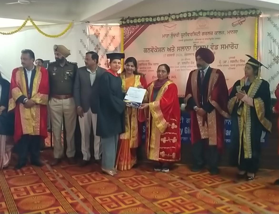 ਮਾਨਸਾ, 17 ਫਰਵਰੀ: ਪੰਜਾਬ ਦੇ ਕੈਬਨਿਟ ਮੰਤਰੀ ਡਾ. ਬਲਜੀਤ ਕੌਰ ਨੇ ਮਾਤਾ ਸੁੰਦਰੀ ਯੂਨੀਵਰਸਿਟੀ ਗਰਲਜ਼ ਕਾਲਜ ਮਾਨਸਾ ਵਿਖੇ ਆਯੋਜਿਤ ਦੂਜੀ ਕਨਵੋਕੇਸ਼ਨ ਅਤੇ ਸਾਲਾਨਾ ਇਨਾਮ ਵੰਡ ਸਮਾਰੋਹ ਵਿਚ ਮੁੱਖ ਮਹਿਮਾਨ ਵਜੋਂ ਸ਼ਿਰਕਤ ਕੀਤੀ। ਉਨ੍ਹਾਂ ਇਸ ਦੌਰਾਨ ਸਾਲ 2021 ਤੋਂ ਸਾਲ 2025 ਤੱਕ ਪਾਸ ਹੋਈਆਂ 300 ਗਰੈਜੂਏਟ ਅਤੇ 161 ਪੋਸਟ ਗਰੈਜੂਏਟ ਵਿਦਿਆਰਥਣਾਂ ਨੂੰ ਡਿਗਰੀਆਂ ਦੀ ਵੰਡ ਕੀਤੀ।