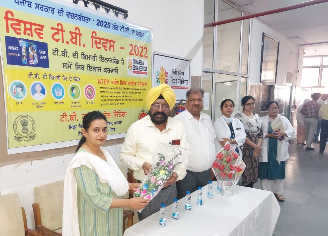 ਮਾਨਸਾ, 24 ਮਾਰਚ 2022 : ਸਿਵਲ ਸਰਜਨ ਮਾਨਸਾ ਡਾ. ਹਰਜਿੰਦਰ ਸਿੰਘ ਦੀ ਪ੍ਰਧਾਨਗੀ ਹੇਠ ਸਿਵਲ ਹਸਪਤਾਲ ਮਾਨਸਾ ਵਿਖੇ ਵਿਸ਼ਵ ਤਪਦਿਕ ਦਿਵਸ ਮਨਾਇਆ ਗਿਆ।ਇਸ ਮੌਕੇ ਜਾਣਕਾਰੀ ਸਾਂਝੀ ਕਰਦਿਆਂ ਉਨਾਂ ਕਿਹਾ ਕਿ ਜਿਲ੍ਹੇ ਦੇ ਸਾਰੇ 108 ਸਬ-ਸੈਂਟਰਾ ਵਿਖੇ ਟੀ.ਬੀ. ਜਾਗਰੂਕਤਾ ਸਬੰਧੀ ਸੈਮੀਨਾਰ ਕਰਵਾਏ ਗਏ।ਇਸ ਮੌਕੇ ਲੋਕਾਂ ਨੂੰ ਜਾਗਰੂਕ ਕੀਤਾ ਗਿਆ ਕਿ ਟੀ.ਬੀ. ਲਾ-ਇਲਾਜ ਬਿਮਾਰੀ ਨਹੀ ਹੈ ਅਤੇ ਇਸ ਦਾ ਇਲਾਜ ਜ਼ਿਲੇ ਦੇ ਹਰ ਸਿਹਤ ਕੇਂਦਰ ਵਿੱਚ ਸਰਕਾਰ ਵੱਲੋਂ ਮੁਫਤ ਕੀਤਾ ਜਾਂਦਾ ਹੈ।ਉਨਾਂ ਦੱਸਿਆ ਕਿ ਤਪਦਿਕ ਦੇ ਖਾਤਮੇ ਲਈ ਸਰਕਾਰ ਵੱਲੋਂ 2025 ਤੱਕ ਦੇਸ਼ ਨੂੰ ਟੀ.ਬੀ. ਮੁਕਤ ਕਰਨ ਦਾ ਟੀਚਾ ਰੱਖਿਆ ਹੈ, ਜਿਸ ਵਿੱਚ ਸਰਕਾਰ ਦੇ ਨਾਲ-ਨਾਲ ਆਮ ਲੋਕਾਂ ਦਾ ਸਹਿਯੋਗ ਵੀ ਬਹੁਤ ਜ਼ਰੂਰੀ ਹੈ।