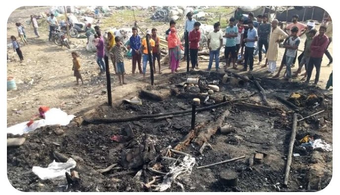 ਇਥੇ ਕੂੜੇ ਦੇ ਢੇਰ ਨਾਲ ਬਣੀ ਝੁੱਗੀ ਵਿੱਚ ਅਚਾਨਕ ਭਿਆਨਕ ਅੱਗ ਲੱਗ ਗਈ। ਰੌਲਾ ਸੁਣ ਕੇ ਲੋਕ ਦੌੜੇ ਆਏ। ਮੌਕੇ ‘ਤੇ ਫਾਇਰ ਬ੍ਰਿਗੇਡ ਦੀਆਂ ਗੱਡੀਆਂ ਵੀ ਪਹੁੰਚ ਗਈਆਂ, ਜਿਨ੍ਹਾਂ ਨੇ ਕਾਫੀ ਮੁਸ਼ੱਕਤ ਨਾਲ ਅੱਗ ਤੇ ਕਾਬੂ ਪਾਇਆ ਪਰ ਅੱਗ ਇੰਨੀ ਜ਼ਿਆਦਾ ਸੀ ਕਿ ਪਰਿਵਾਰ ਦਾ ਕੋਈ ਵੀ ਮੈਂਬਰ ਬਾਹਰ ਨਹੀਂ ਨਿਕਲ ਸਕਿਆ। ਲੋਕਾਂ ਨੇ ਪਾਣੀ ਦੀਆਂ ਬਾਲਟੀਆਂ ਨਾਲ ਅੱਗ ਬੁਝਾਉਣ ਦੀ ਕੋਸ਼ਿਸ਼ ਕੀਤੀ ਪਰ ਪਰਿਵਾਰ ਨੂੰ ਬਚਾਇਆ ਨਹੀਂ ਜਾ ਸਕਿਆ।