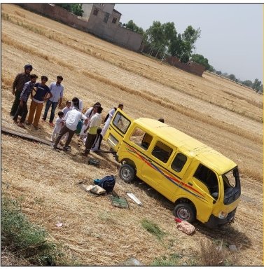 ਇਸ ਹਾਦਸੇ ’ਚ ਸਕੂਲ ਵੈਨ ਦੇ ਡਰਾਈਵਰ ਨੇ ਮੋਟਰਸਾਈਕਲ ’ਤੇ ਜਾ ਰਹੇ ਦੋ ਵਿਅਕਤੀਆਂ ਨੂੰ ਬਚਾਉਂਦੇ ਹੋਏ ਵੈਨ ਸੜਕ ਕਿਨਾਰੇ ਕਰ ਦਿੱਤੀ ਅਤੇ ਵੈਨ ਬੇਕਾਬੂ ਹੋ ਕੇ ਖੇਤਾਂ ’ਚ ਪਲਟ ਗਈ।