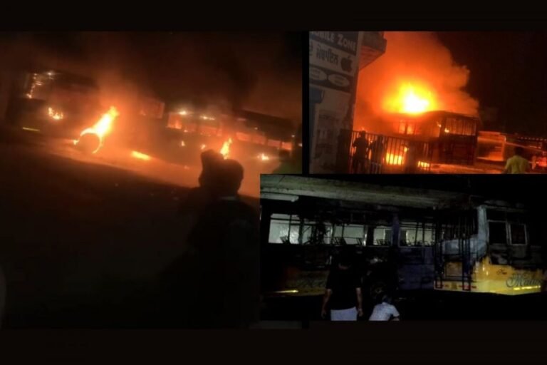 ਬਠਿੰਡਾ ਦੇ ਭਗਤਾ ਭਾਈ ‘ਚ ਵੱਡਾ ਹਾਦਸਾ ਵਾਪਰਿਆ ਹੈ। ਦੇਰ ਰਾਤ ਬੱਸ ਸਟੈਂਡ ‘ਚ ਲੱਗੀ ਭਿਆਨਕ ਅੱਗ ਨਾਲ ਬੱਸ ‘ਚ ਸੌਂ ਰਹੇ ਕੰਡਕਟਰ ਦੀ ਜ਼ਿੰਦਾ ਸੜਨ ਨਾਲ ਮੌਤ ਹੋ ਗਈ ਹੈ। ਦੇਰ ਰਾਤ ਕਰੀਬ 10:30 ਵਜੇ ਭਗਤਾ ਭਾਈ ਬੱਸ ਸਟੈਂਡ ‘ਤੇ ਅਚਾਨਕ ਅੱਗ ਲੱਗਣ ਕਾਰਨ 4 ਬੱਸਾਂ ਸੜ ਕੇ ਸੁਆਹ ਹੋ ਗਈਆਂ, ਜਦੋਂਕਿ ਬੱਸ ਦੇ ਅੰਦਰ ਸੁੱਤੇ ਪਏ ਪ੍ਰਾਈਵੇਟ ਕੰਪਨੀ ਦੇ ਬੱਸ ਕੰਡਕਟਰ ਗੁਰਦਾਸ ਦੀ ਫਸ ਜਾਣ ਕਾਰਨ ਮੌਤ ਹੋ ਗਈ। ਅੱਗ ਬੁਝਾਉਣ ਵਾਲੀ ਗੱਡੀ ਨੇ ਮੌਕੇ ‘ਤੇ ਪਹੁੰਚ ਕੇ ਅੱਗ ‘ਤੇ ਕਾਬੂ ਪਾ ਲਿਆ। ਜਿਸ ਦੀ ਪੁਸ਼ਟੀ ਪ੍ਰਾਈਵੇਟ ਬੱਸ ਦੇ ਮੈਨੇਜਰ ਨੇ ਮੀਡੀਆ ਦੇ ਸਾਹਮਣੇ ਕੀਤੀ।
