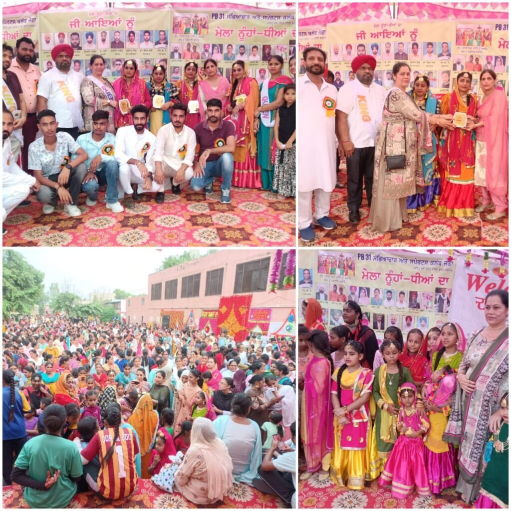 ਮਾਨਸਾ, 17 ਅਗਸਤ ( ਪ੍ਰਾਈਮ ਪੋਸਟ ਪੰਜਾਬ ) : ਪੀਬੀ-31 ਸਭਿਆਚਾਰ ਅਤੇ ਸਪੋਰਟਸ ਕਲੱਬ ਜੋਗਾ ਜਿਲ੍ਹਾ ਮਾਨਸਾ ਵੱਲੋਂ ਹਰ ਸਾਲ ਦੀ ਤਰਾਂ ਇਸ ਸਾਲ ਵੀ ਸਾਉਣ ਮਹੀਂਨੇ ਵਿੱਚ ਨੂੰਹਾਂ ਅਤੇ ਧੀਆਂ ਵੱਲੋ ਮਨਾਏ ਜਾਂਦੇ ਤੀਆਂ ਤੀਜ ਦੀਆਂ ਨੂੰ ਪਿੰਡ ਜੋਗਾ ਦੇ ਸਰਕਾਰੀ ਸੀਨੀਅਰ ਸੰਕੈਡਰੀ ਸਕੂਲ਼ (ਲੜਕੀਆਂ)ਜੋਗਾ ਵਿੱਚ ਸ਼ਾਨੋ ਸ਼ੋਕਤ ਨਾਲ ਮਨਾਇਆ ਗਿਆ।ਜਗਦੇਵ ਮਾਂਹੂ ਪ੍ਰਧਾਨ ਪੀ.ਬੀ 31 ਕਲੱਬ ਜੋਗਾ ਦੀ ਦੇਖਰੇਖ ਹੇਠ ਕਰਵਾਏ ਗਏ ਇਸ ਨੂੰਹਾਂ ਧੀਆਂ ਦੇ ਮੇਲੇ ਦੇ ਦੋਨੋ ਦਿਨ ਪਿੰਡ ਦੀਆਂ ਨੂੰਹਾਂ ਧੀਆਂ ਨੇ ਗਿੱਧਾ ਭੰਗੜਾ ਪਾਕੇ ਆਪਣੇ ਚਾਅ ਮੁਲਾਰ ਪੂਰੇ ਕੀਤੇ।ਇਸ ਮੇਲੇ ਦੀ ਵਿਸ਼ੇਸ਼ਤਾ ਇਹ ਸੀ ਕਿ ਲੜਕੀਆਂ ਦੇ ਗਿੱਧੇ ਅਤੇ ਵੱਖ ਵੱਖ ਮੁਕਾਬਿਲਆਂ ਲਈ ਬਣਾਏ ਪੰਡਾਲ ਦਾ ਨਾਂਮ ਵੀ ਵਿਹੜਾ ਸ਼ਗਨਾਂ ਦਾ ਅਤੇ ਮਹਿੰਦੀ ਰੱਖਿਆ ਗਿਆ ਸੀ।ਇਸ ਮੌਕੇ ਨੂੰਹਾਂ ਅਤੇ ਧੀਆਂ ਦੇ ਪੁਰਾਤਨ ਪਹਿਰਾਵੇ ਦੇ ਮੁਕਾਬਲੇ ਕਰਵਾਏ ਗਏ।ਧੀਆਂ ਦੇ ਸੀਨੀਅਰ ਵਰਗ ਵਿੱਚ ਅਰਸ਼ਦੀਪ ਕੌਰ ਨੇ ਪਹਿਲਾ ਰਾਜਬੀਰ ਕੌਰ ਨੇ ਦੂਸਰਾ ਅਤੇ ਜਸਪ੍ਰੀਤ ਕੌਰ ਨੇ ਤੀਸਰਾ ਸਥਾਨ ਪ੍ਰਾਪਤ ਕੀਤਾ।